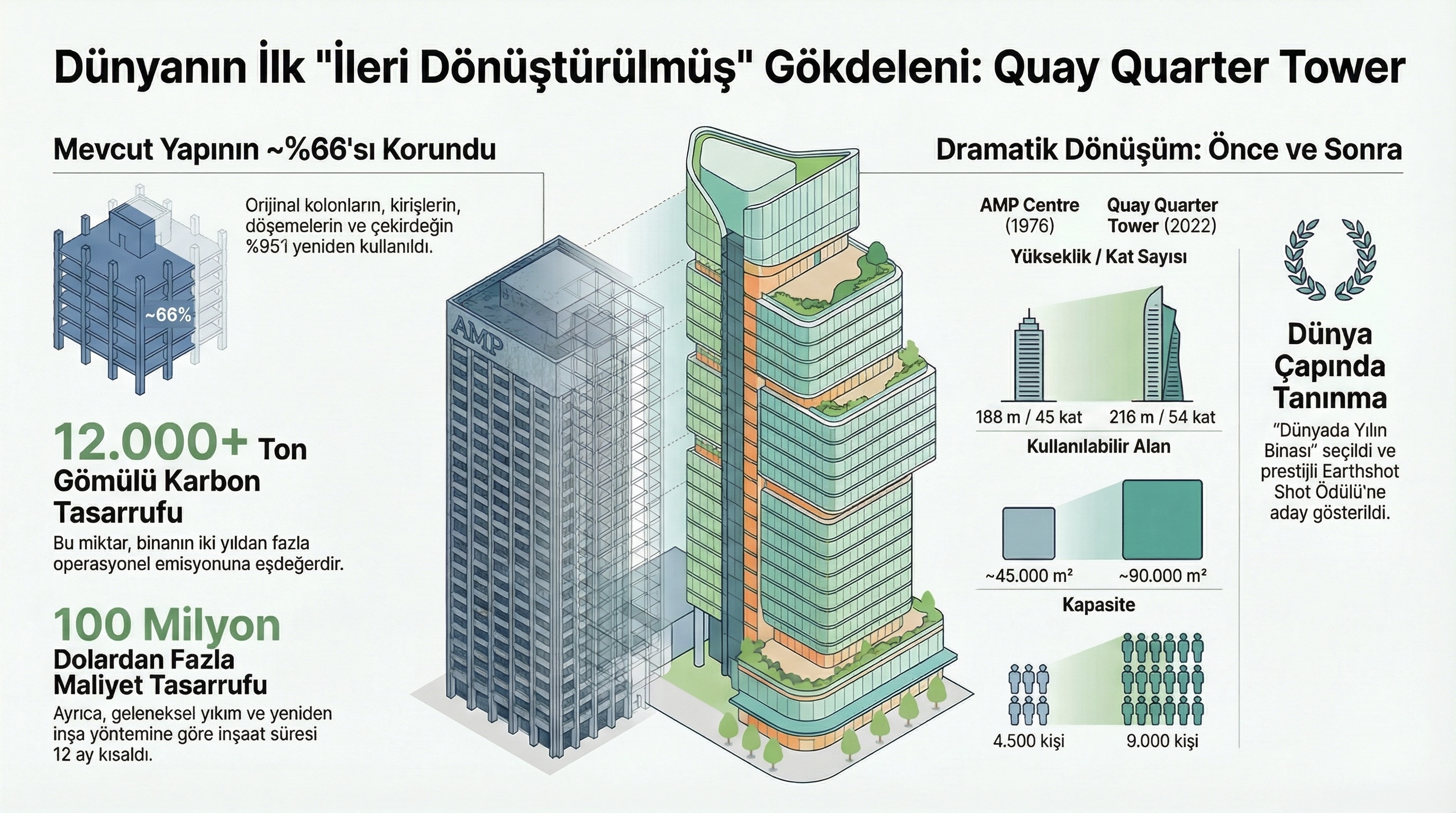 Yaklaşık 50 yıl önce, 1976’da Avustralya’nın Sidney kentinde inşa edilen ve döneminin en yüksek yapılarından biri olan AMP Center, yıkılmadan tadilat edilerek iki katına yakın kapalı alana sahip modern bir yapıya dönüştürüldü.
