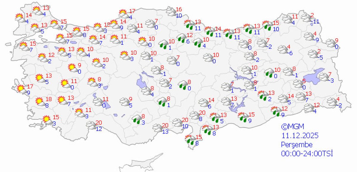 MGM haritalarına göre, Marmara ve Karadeniz’in iç bölgelerinde yer yer yağmur beklenirken, Ege kıyılarında sağanaklar etkili olabilir.