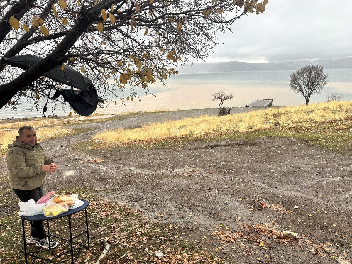 Daha da ilginci, aşağı yamaçlarda ve Van Gölü kıyısında vatandaşların yağmurlu havaya rağmen suya girerek yüzmeye devam etmesi ve piknik yapmasıydı.