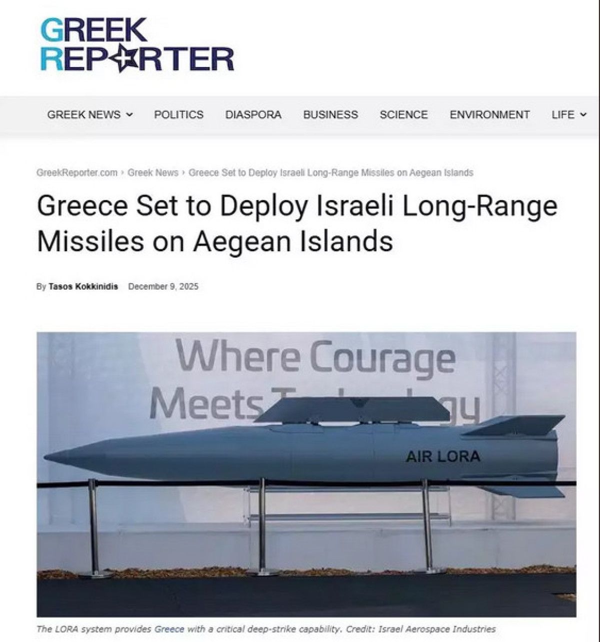 Alınan füzelerin Ege’deki kilit adalara yerleştirileceğine dair savunma kaynaklarından bilgi edindiklerini dile getiren gazete, “LORA satın alımı, Türkiye’nin Bora ve Tayfun gibi giderek daha da gelişmiş ve yerli balistik füze programlarına karşı doğrudan bir karşı önlem niteliğindedir. Atina, LORA’yı adalarda ve ana karada konuşlandırarak güvenilir, simetrik ve uzun menzilli bir vuruş kabiliyeti oluşturmayı hedefliyor.” ifadelerine yer verdi.