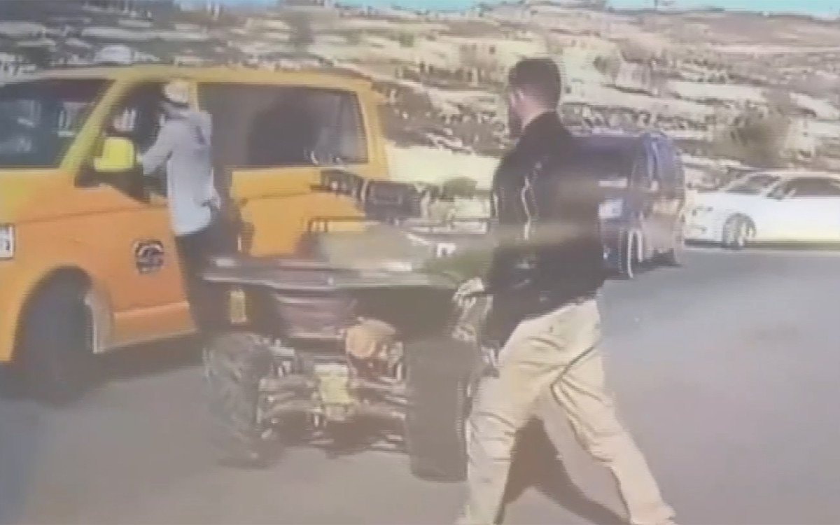 Yol kenarında namaz kılan Filistinliyi ezdikten sonra bağırdığı ve otomatik silah taşıdığı görülen İsrailli yoldan geçen ve olaya tepki gösteren Filistinli taksi sürücüsüne de saldırdı.