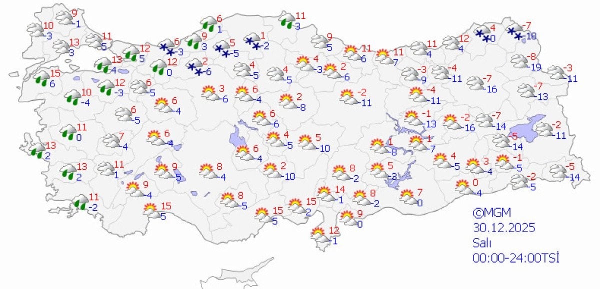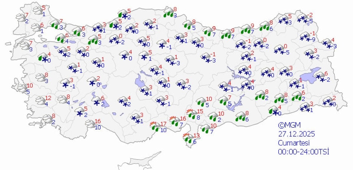 Sıcaklıkların çoğu ilde 0-10 derece bandında olacağı ve yüksek kesimlerde -5 dereceye kadar düşüş görüleceği öngörülüyor.