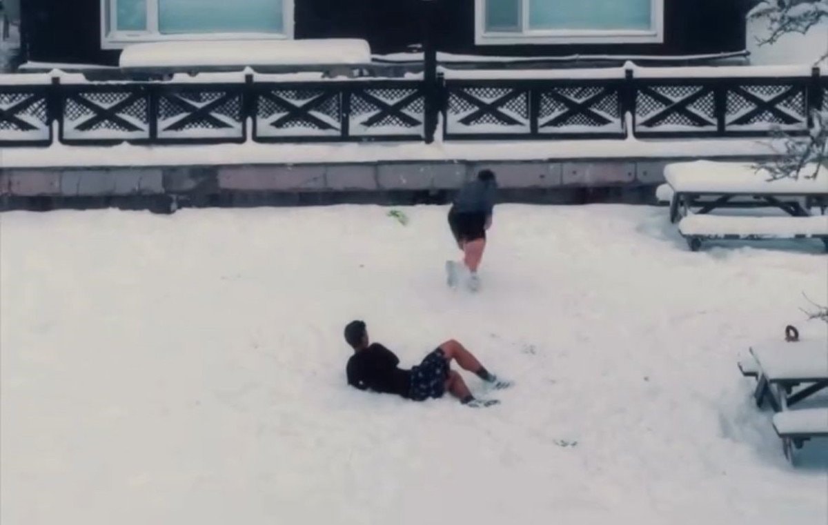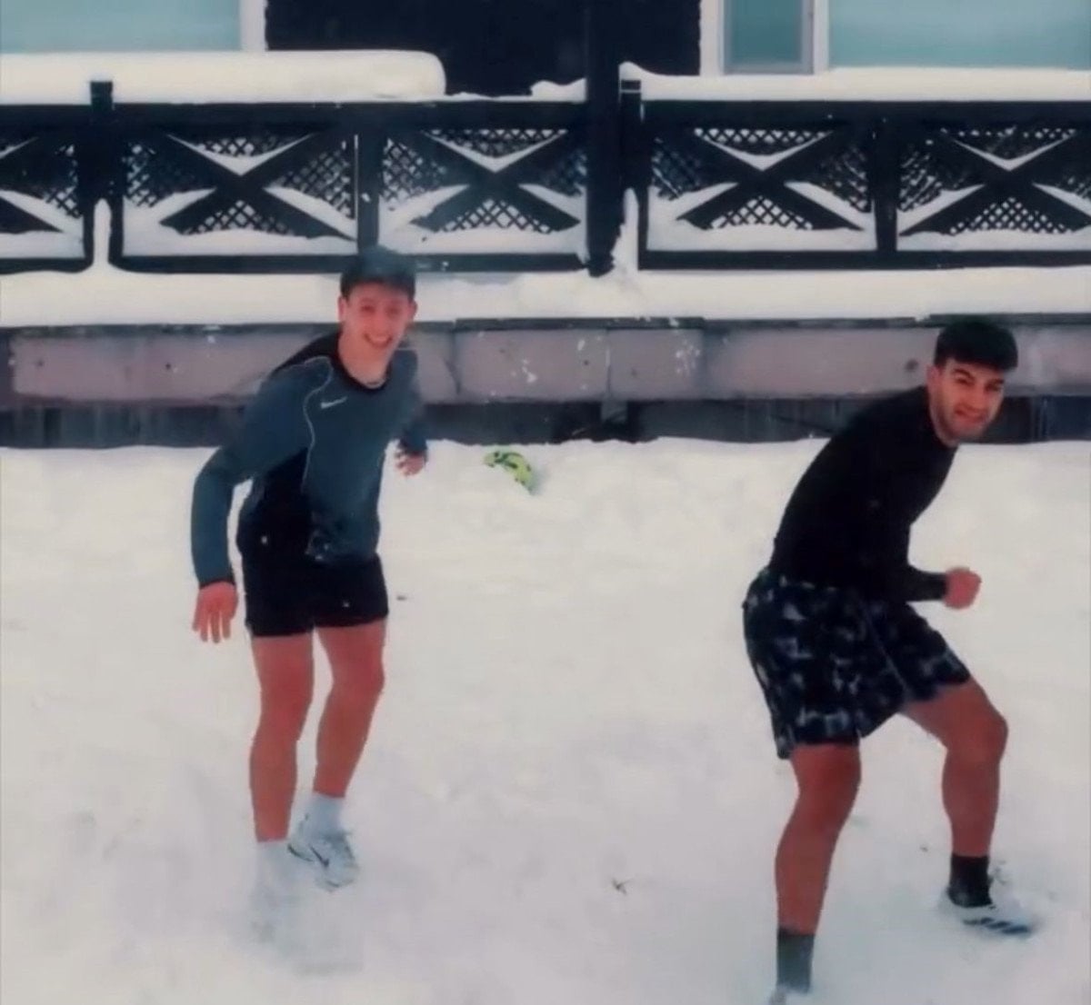 Bölgede etkili olan kar yağışını fırsat bilen Arda Güler, Yiğit Efe Demir ile birlikte dışarı çıkarak beyaz örtü üzerinde futbol oynadı.