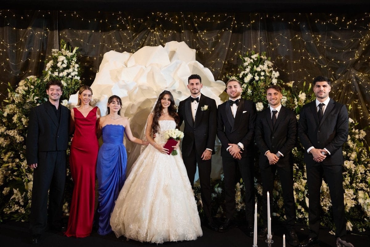 Geçmiş dönemlerde Fenerbahçe forması giyen Samet Akaydin’ın nikah töreni esnasında şahitliklerini yapan arkadaşları dikkat çekti.
