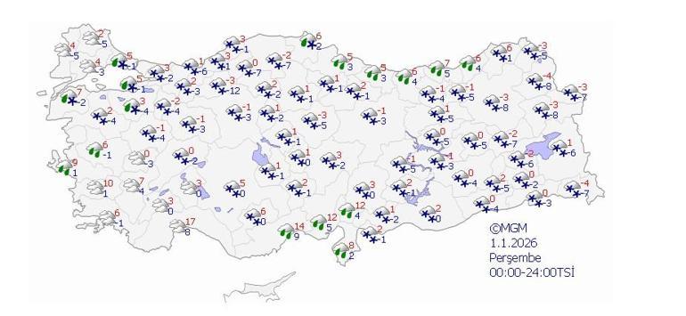 Meteoroloji Genel Müdürlüğü tarafından yapılan tahminlere göre: Ülkemiz genelinin parçalı ve çok bulutlu, Orta Karadeniz kıyıları, Çanakkale, Balıkesir, İstanbul, Manisa ve Giresun çevreleri ile İzmir’in kuzey kesimlerinin yağmur ve sağanak yağışlı, İç Anadolu, Batı Karadeniz, Orta ve Doğu Karadeniz’in iç kesimleri, Doğu Anadolu (Ardahan, Kars ve Erzurum hariç), Güneydoğu Anadolu (Batman ve Mardin hariç) ile Bilecik, Yalova, Bursa, Kocaeli, Sakarya, Kütahya, Uşak, Afyonkarahisar, Isparta, Osmaniye ve Hatay çevrelerinin karla karışık yağmur ve kar yağışlı geçeceği tahmin ediliyor. Yağışların, Batı Karadeniz’de (Sinop hariç) kuvvetli olması bekleniyor. Kuzey, iç ve doğu kesimlerde buzlanma ve don ile birlikte pus ve yer yer sis hadisesinin görüleceği tahmin ediliyor.