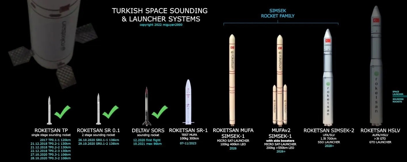 Bu arada Türkiye’de fırlatma sistemi geliştiren firmalar için de projenin önemi büyük. Bilindiği üzere Roketsan, 100 kg ve üzerindeki mikro uyduları 400 km irtifadaki Alçak Dünya Yörüngesine (LEO) yerleştirme kapasitesine sahip Mikro Uydu Fırlatma Sistemi (MUFS) geliştiriyor. DeltaV Uzay Teknolojileri de SORS roketleri ile ciddi ilerlemeler kaydetmiş durumda. Ek olarak TUSAŞ da Şimşek-1 ve Şimşek-2 sistemleri ile 400-1500kg yükü fırlatacak. Selçuk Bayraktar tarafından kurulan Fergani Uzay da kendi uydularının yanı sıra fırlatma sistemleri üzerinde çalışıyor.