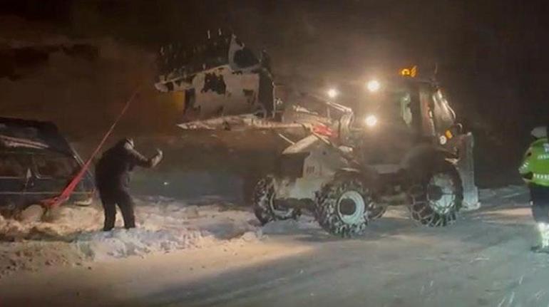 Kara saplanan otomobilde traktör yardımıyla saplandığı yerden çıkartıldı. İhtiyacı görülen 3 kişinin gidecekleri yere güvenli bir şekilde ulaşımları sağlandı.