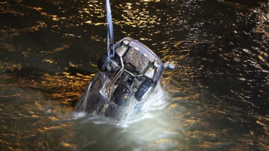 Amasya’da sürücüsü henüz öğrenilmeyen otomobil, İstasyon Köprüsü korkuluklarına çarparak Yeşilırmak’a düştü.