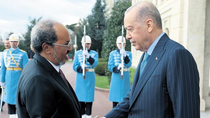 Cumhurbaşkanı Recep Tayyip Erdoğan, davetine icabetle Türkiye’ye gelen Somali Cumhurbaşkanı Hasan Şeyh Mahmud’u kabul etti. Erdoğan, Somali Cumhurbaşkanı Mahmud’u, Cumhurbaşkanlığı Dolmabahçe Ofisi’nde resmi törenle karşıladı. Tören sonrası iki lider önce baş başa görüştü. Heyetler arası görüşmenin ardından ortak basın toplantısı düzenlendi.